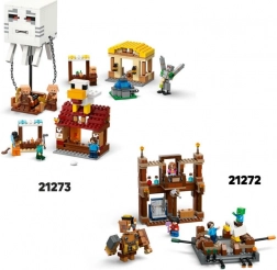 Partez défendre la sécurité du village ! Les piglins attaquent depuis un effrayant ballon en forme de ghast doté d’un lance-disques, tandis que Steve, Natalie et Dawn protègent les villageois, le marché et leur restaurant de poulet frit. La fontaine peut être « déclenchée » grâce à un élément caché, et un grand poulet avec fonction de ponte vous attend sur le toit du restaurant.
