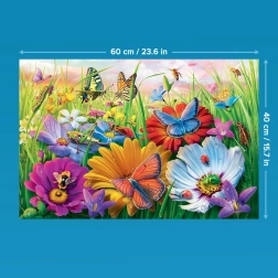 Plongez dans le monde coloré d’un pré peuplé d’insectes et savourez des instants de détente avec un puzzle qui réunit les générations. Grâce aux pièces plus grandes, l’assemblage est confortable, rapide et clair, pour le plaisir de tous – des enfants aux grands-parents.