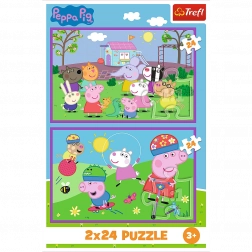 Le set de puzzles 2x24 est un excellent divertissement pour les enfants, il contient deux puzzles de 24 pièces avec le motif du personnage préféré Peppa Pig, idéal pour jouer ensemble.