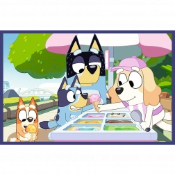 Joyeuse Bluey est un ensemble de puzzles représentant les personnages du dessin animé Bluey. Chaque puzzle forme une image de 275 x 180 mm.