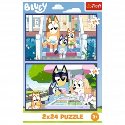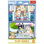 Puzzle 2x24 Joyeuse Bluey propose deux puzzles de 24 pièces dans un seul coffret ! Cela rend l’assemblage encore plus intéressant et permet la participation de plusieurs enfants.