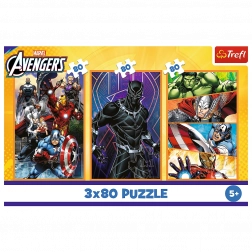 Les puzzles 3x80 Journées d’Action présentent des scènes impressionnantes avec les super-héros Avengers préférés tels que Captain America, Black Panther, Thor, Iron Man et Hulk. Chaque puzzle assemblé forme une image de 275 x 180 mm.