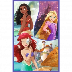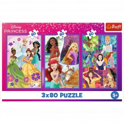Puzzle 3x80 Disney Princesses Amies contient trois puzzles différents avec des motifs de princesses Disney. Cet ensemble offre du divertissement pour plusieurs enfants, car il propose trois puzzles de 80 pièces.