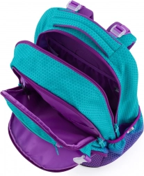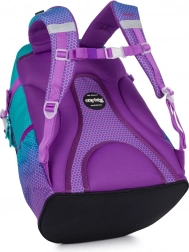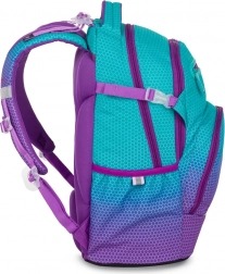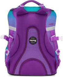Le sac à dos scolaire Oxy Ombre Blue Pink séduit par son design ombré moderne associant turquoise et violet avec un motif hexagonal. Grâce au panneau dorsal anatomique et aux bretelles rembourrées et réglables, il offre un confort tout au long de la journée même en pleine charge. Le fond rigide permet une position stable et protège le contenu.