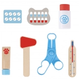 L'ensemble comprend 16 pièces différentes, y compris un stéthoscope, une seringue et d'autres outils médicaux permettant aux enfants d'imiter le véritable travail d'un vétérinaire.
