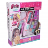 Créez des coiffures originales avec ce kit pratique pour le styling coloré des cheveux. Il comprend une brosse, des pinces, des craies pour cheveux et un applicateur de couleur pour une décoration capillaire facile et ludique à la maison.