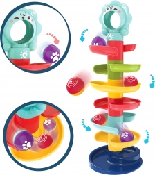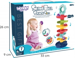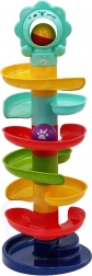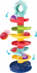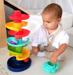 Ce culbuteur unique de la marque Woopie est un élément de jeu idéal pour les enfants à partir de 6 mois. Grâce à la tour en spirale, les enfants peuvent suivre les billes qui se dévalent de haut en bas, ce qui aide à développer leurs capacités de coordination et leur saisie visuelle. La taille et le poids des billes sont idéaux pour les petites mains d'enfants, permettant une manipulation facile.