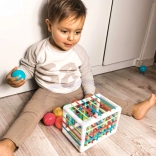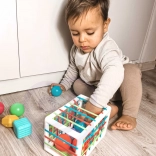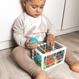 Ce cube amusant et éducatif pour enfants contient 12 pièces différentes qui éveillent la curiosité et encouragent l’envie d’expérimenter. Le cube est équipé de 6 balles souples et de 6 cubes sensoriels rigides avec différentes textures, couleurs et formes. Cette combinaison aide au développement des sens et de la pensée de l’enfant, l’encourageant à explorer.