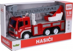 Un camion de pompiers réaliste à friction qui ravira tous les petits sauveteurs. Il offre des effets lumineux et sonores, des boutons fonctionnels sur la cabine et une échelle extensible. Les piles sont incluses, prêt à l’action dès le déballage.
