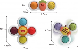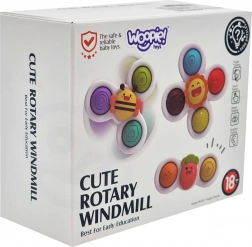Le set WOOPIE comprend trois adorables spinners en forme de soleil, d’abeille et de petite carotte. Grâce à des roulements résistants, les jouets tournent de manière fluide et prolongée, tandis que les éléments en caoutchouc colorés incitent les enfants à presser et découvrir différentes textures. Les ventouses permettent de fixer facilement les jouets sur des surfaces lisses – fenêtre, carrelage, baignoire ou table.