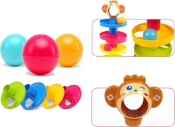 Les balles colorées avec des sons de hochet favorisent la stimulation des sens et la coordination.