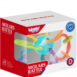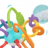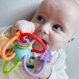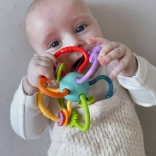 Le jouet peut être placé au réfrigérateur pour soulager les gencives irritées de l’enfant pendant la poussée dentaire. Il est destiné aux enfants dès la naissance et combine la fonction d’anneau de dentition et de hochet. Les textures, couleurs et formes variées éveillent les sens de l’enfant.