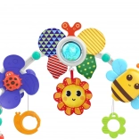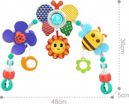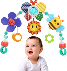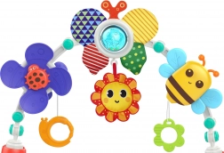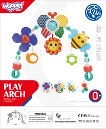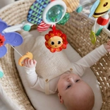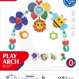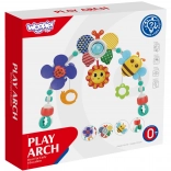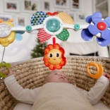 WOOPIE arche avec jouets est conçue pour offrir non seulement du plaisir, mais aussi du développement aux enfants. Sur l'arche, vous trouverez divers jouets tels qu'une roue à vent avec coccinelle qui tourne et vibre en mouvement, un soleil qui couine lorsqu'on le presse, un hochet papillon avec une boule transparente où des billes colorées rebondissent, et des matériaux froissés enrichissant l'expérience sensorielle de l'enfant.