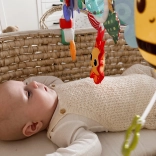 Grâce à sa flexibilité, il se fixe facilement sur poussette, siège-auto ou lit.