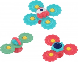 Le lot de 3 jouets tournants de type spinner de la marque Woopie est un jouet interactif et coloré pour votre enfant. Chacun des jouets est différent et possède 2, 3 ou 4 bras. Ils peuvent être fixés sur des surfaces lisses, ce qui augmente les possibilités de jeu. Des matériaux sûrs permettent au jouet de servir également de jouet de dentition pour l’enfant. Grâce aux éléments en relief et en creux, il stimule parfaitement les sens et développe les compétences motrices de l’enfant.