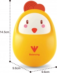 Adorable poussin culbuto de la marque WOOPIE, un jouet idéal pour les tout-petits. Il suffit de le pousser légèrement pour qu’il se balance sans jamais se renverser. Grâce à ses couleurs gaies et à ses sons mélodieux, il favorise le développement des sens, la motricité fine et globale ainsi que la perception naturelle du rythme. Fabriqué en ABS sûr pour un jeu en toute tranquillité.