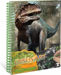 Découvrez la magie des motifs fantastiques avec le carnet à gratter DinosArt. Chaque page offre une toile artistique prête pour votre créativité.