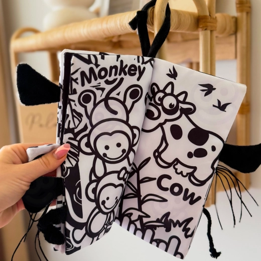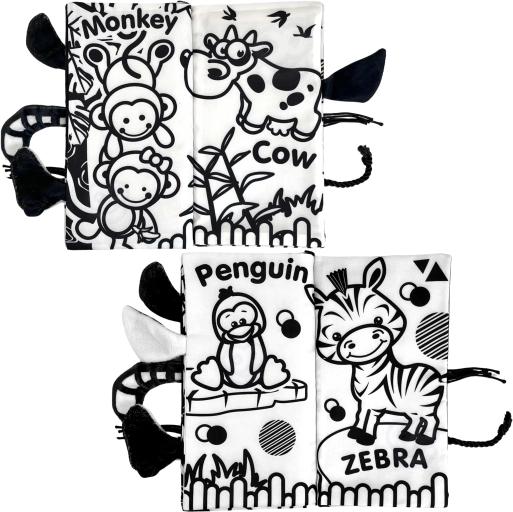 Les images en noir et blanc avec des animaux sont idéales pour les nouveau-nés et aident à développer l’acuité visuelle et la concentration.