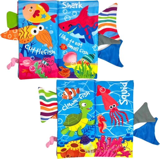 Le livre en tissu WOOPIE à thème marin est un premier jouet idéal pour les bébés dès la naissance. Chaque page propose des illustrations colorées et différentes textures qui invitent au toucher. Les queues en relief des poissons et autres créatures marines encouragent les enfants à saisir et tirer, ce qui renforce naturellement la motricité fine et la coordination.