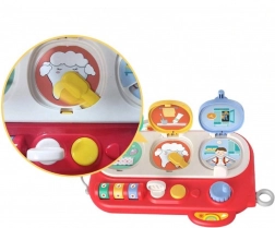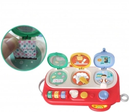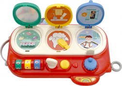 Ce jouet éducatif astucieux comporte trois fenêtres, chacune s’ouvrant d’une manière différente – avec une combinaison de symboles, une clé ou un bouton et une commande rotative. À l’intérieur, les enfants découvrent diverses surprises : des « mouchoirs » à tirer, une image de dent avec une brosse mobile et un petit personnage avec sélection rotative de tenues. Chaque geste a un résultat clair, ce qui renforce la compréhension de la cause et de l’effet.