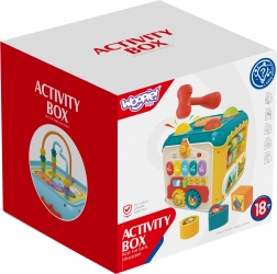 Sur l’un des côtés, vous trouverez un piano permettant à l’enfant de jouer des touches qui émettent des sons agréables. Une autre attraction est un banc à marteler, où les enfants utilisent le maillet pour enfoncer des balles colorées à l’intérieur du cube.