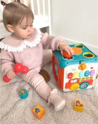 Chaque activité est soigneusement conçue pour favoriser différentes compétences telles que la coordination œil-main, la reconnaissance des formes et des couleurs, le développement de l’ouïe et l’expression de la créativité. Grâce à ses dimensions compactes, le cube est facile à transporter tout en offrant une source inépuisable de divertissement pour les petits explorateurs qui aiment apprendre en jouant.