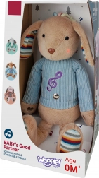 Le chien en peluche est équipé de trois zones sensorielles - sur les pattes et le ventre, qui lancent des mélodies lorsqu'on les touche. Ses joues rosées s'illuminent, créant une ambiance magique autour du jouet. Le doudou est habillé d'un pull sous lequel se trouve l'emplacement pour 3 piles. Ce doux doudou deviendra un ami pour votre enfant dès le plus jeune âge.