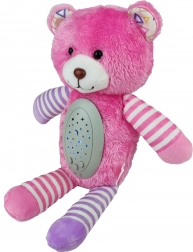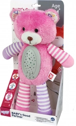 Adorable ourson rose WOOPIE, douce veilleuse en peluche 2-en-1 avec lumière nocturne et projecteur. Il propose 10 berceuses, 6 couleurs de lumière et 3 modes de projection pour un endormissement serein. Grâce à son mécanisme amovible, la peluche se lave facilement, est sans danger pour les bébés et parfaite aussi pour les enfants plus âgés.