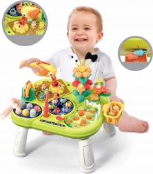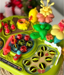8 en 1 (pêche aux poissons, taper sur les vers, assemblage de fleurs, tirer les carottes, nourrir le petit oiseau, moulin rotatif, panier pour pièces, cachette pour les vers)