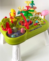 La table d’activités interactive WOOPIE offre aux enfants à la fois amusement et développement. Grâce à 8 activités en 1, elle propose de longues heures de découvertes : pêche aux poissons, taper sur les vers avec un marteau, jardinage avec fleurs et carottes, et jeu avec l’oiselet en tirant le ver. Elle favorise la motricité fine, la patience, la concentration et la coordination œil-main.