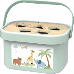 Le couvercle à découpes apprend aux enfants à trier et reconnaître les formes et les couleurs. Après le jeu, les pièces se rangent à l’intérieur et la boîte se transporte facilement grâce à sa poignée pratique.