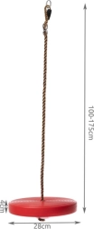 Longueur des cordes ajustable de 100 à 175 cm pour adapter la hauteur, convenant aux petits et grands espaces. La balançoire est fabriquée à partir de matériaux de haute qualité résistants aux intempéries et aux rayons UV, garantissant sa durabilité.