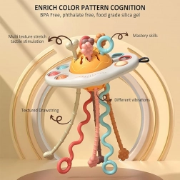 Découvrez un jouet sensoriel multifonction en forme d’UFO, combinant anneau de dentition, hochet et des cordelettes interactives à tirer. Il favorise le développement de la motricité et de la coordination, stimule la vue, l’ouïe et le toucher, tout en apportant un soulagement pendant la poussée dentaire. Des matériaux sûrs, sans BPA, et un entretien facile en font un choix idéal pour les bébés dès 6 mois.
