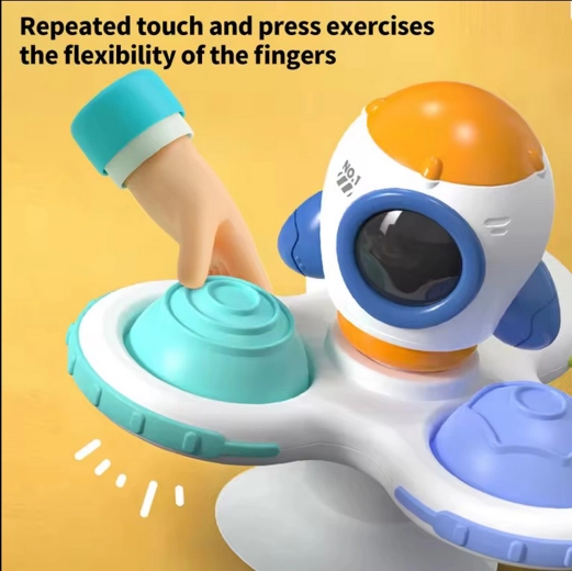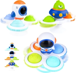 Découvrez l’ensemble coloré de trois spinners sensoriels WOOPIE BABY aux motifs astronaute, fusée et extraterrestre. Les enfants peuvent faire tourner le spinner, presser les boutons en silicone aux textures et chiffres variés, et explorer les formes et les couleurs. Une ventouse en silicone assure une fixation ferme sur les surfaces lisses, tandis que des roulements de qualité permettent une rotation longue durée. Idéal dès 18 mois pour le développement de la motricité fine, la stimulation sensorielle et la concentration.