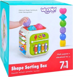 La cube d’activités WOOPIE est un jouet éducatif bien pensé qui, dans une forme compacte, propose de nombreuses activités pour les découvertes quotidiennes. Du panneau supérieur amovible avec mini xylophone, aux engrenages et au labyrinthe de perles, jusqu’aux cordons texturés – chaque face apporte un stimulus différent pour le développement de la coordination œil-main, la concentration et la créativité.