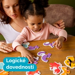 Découvrez l’univers de la ferme avec de petits puzzles silhouettes, parfaits pour une première découverte des puzzles. Chacune des 8 images se compose de 2 pièces robustes qui s’emboîtent facilement. Les enfants exercent leur motricité fine, leur pensée logique et la reconnaissance des animaux.
