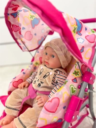 Une poussette pour poupées légère et stable de la marque Woopie qui ravira chaque petite maman. Elle possède une poignée réglable, une capote pliable, des ceintures de sécurité et un panier pratique pour les petits objets. Grâce à ses roues silencieuses en mousse, elle est idéale à la maison comme en promenade, et après le jeu vous la plierez facilement pour gagner de la place. Les enfants adoreront son design stylé à petits cœurs.