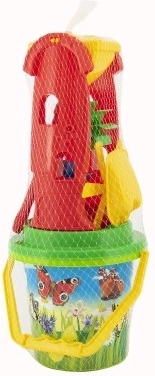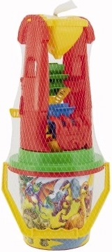 Le seau, la pelle, le râteau et les moules permettent de construire des châteaux, des tunnels et des formes variées. L’ensemble est léger, compact et facile à transporter.