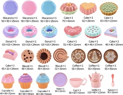 Contient jusqu'à 26 éléments différents, y compris un set de thé, du café et diverses douceurs.