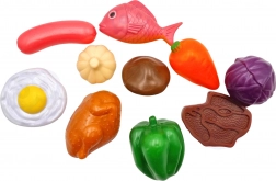 Du poisson, de l’œuf et des saucisses à la carotte, au poivron ou au chou – plus des ustensiles et des assaisonnements pour une expérience culinaire complète.