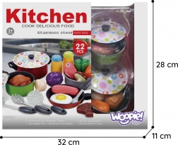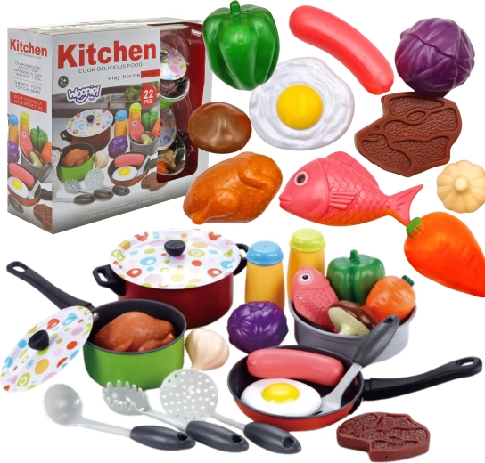 Avec l’ensemble WOOPIE, votre enfant obtient sa propre mini-cuisine : casseroles avec couvercles, poêle, bol, épices et large choix d’aliments allant de l’œuf et des saucisses au poisson, aux légumes ou au steak. Grâce à la réalisation réaliste et aux couleurs vives, il développe imagination, motricité fine et compétences sociales en jouant à cuisiner.