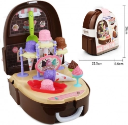 Petit pâtissier toujours prêt ! Ce joli set en forme de sac à dos se transforme, une fois ouvert, en glacier complet et en mini-boutique. Les enfants peuvent servir des boules de glace, garnir des cornets et vendre de délicieuses douceurs aux amis comme aux parents. Grâce à sa construction légère, ils l’emportent facilement au terrain de jeu, chez les grands-parents ou en vacances.