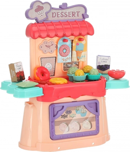 Comprend des glaces, donuts, friandises, bols, boîtes et d’autres accessoires pour un jeu de magasin et de pâtisserie réaliste.