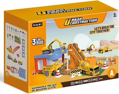 Ce Garage pour véhicules de construction incroyable contient divers engins de construction, y compris un camion à benne, une pelleteuse et un malaxeur. Grâce à cela, les enfants peuvent développer leur créativité et imagination en réalisant différents projets de construction. L'emballage comprend également un convoyeur et des panneaux de signalisation qui ajoutent une touche réaliste au jeu.