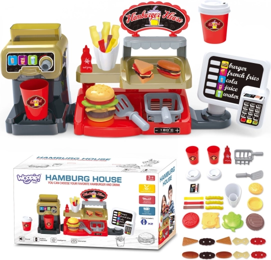 Fast-food jouet XXL WOOPIE avec caisse et distributeur de boissons