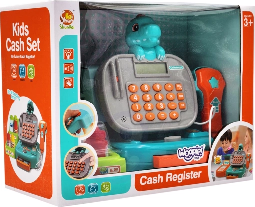 La caisse enregistreuse ludique au motif dinosaures de la marque WOOPIE offre aux enfants un jeu de commerce réaliste. Elle comprend une véritable calculatrice, un tiroir-caisse coulissant, un scanner avec effets sonores et de nombreux accessoires pour d’innombrables scénarios d’achats.