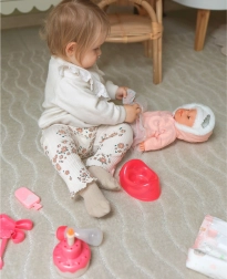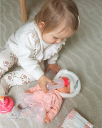 La poupée sait boire au biberon et vous pouvez la nourrir avec le petit bol fourni. Le jeu d’imitation des parents développe l’empathie et la responsabilité.
