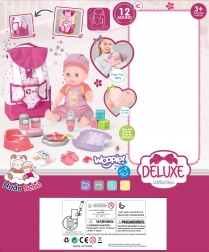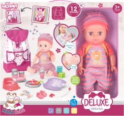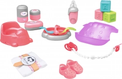 Le set contient tous les accessoires indispensables pour s’occuper de la poupée. Les enfants y trouveront un kit de repas, des accessoires à langer et de nombreux autres jouets. La poupée peut même faire pipi dans le pot, ce qui ajoute au réalisme du jeu.