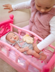 La poupée imite facilement un vrai bébé : les bras et les jambes sont articulés et la tétine se glisse confortablement dans la bouche pour apaiser et jouer à l’endormir.