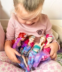 L'ensemble comprend quatre poupées princesses magiques avec des tenues et accessoires uniques qui stimulent l'imagination des enfants.
